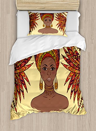 (Ambesonne)/Bedding Bath/Bedding/DIRECT FROM USA/African Duvet Cover Set by Ambesonne, Ethnic Woman in Traditional Turban and Palms Cultural Fol...