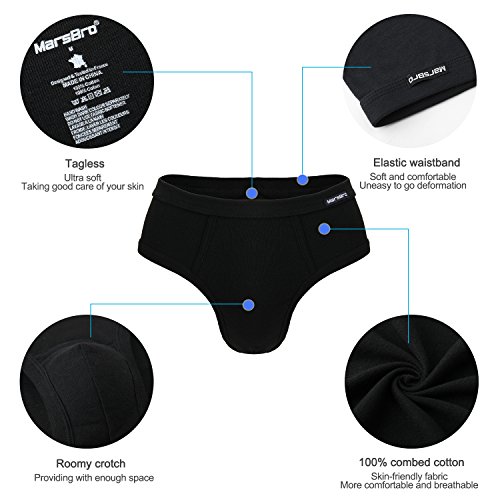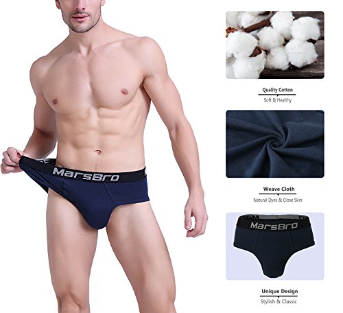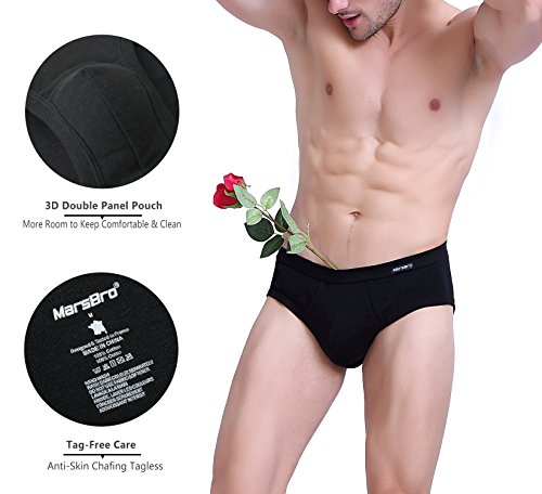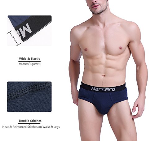-. Binding : Apparel -. Brand : MarsBro -. Department : mens -. Feature : Material: 100% premium combed cotton, featuring ultimate softness and moisture absorption, ultra comfort close to skin and advanced breath ability, natural dyes keep more healthy and color won't fade / Construction: Ergonomic 3D Double Panel Pouch provides more room for P.R.Ivate area and keeps clean. Wide and Elastic waistband provides moderate tightness feel / Stitching: Flat-seam construction to protect against skin irritation, double stitches make underwear much more durable / Design: Full rear coverage cut with reinforced ribbed cuff leg bands for added support and superior flexibility. Tag-less process offers no scratchy and itch-free smooth feel / Customer Service: Promise 90-day Products Exchange and Money Back -. ProductGroup : Apparel -. ProductTypeName : UNDERWEAR -. Title : MarsBro Men's Briefs Soft Waistband Cotton Underwear Size S-XL(Pack Of 4/5)