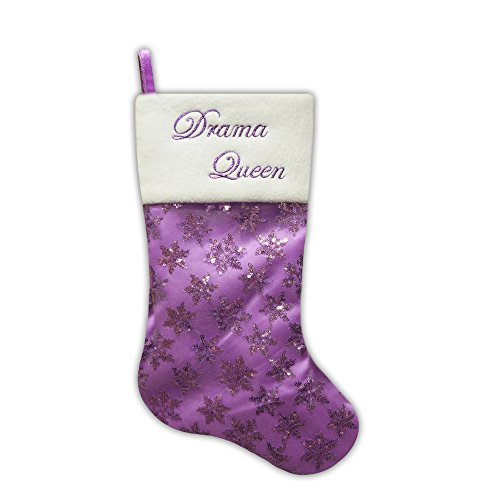20.5" Lavender Drama Queen Sequin Snowflake Christmas Stocking with Fleece Cuff (Drama Queen Lavender)