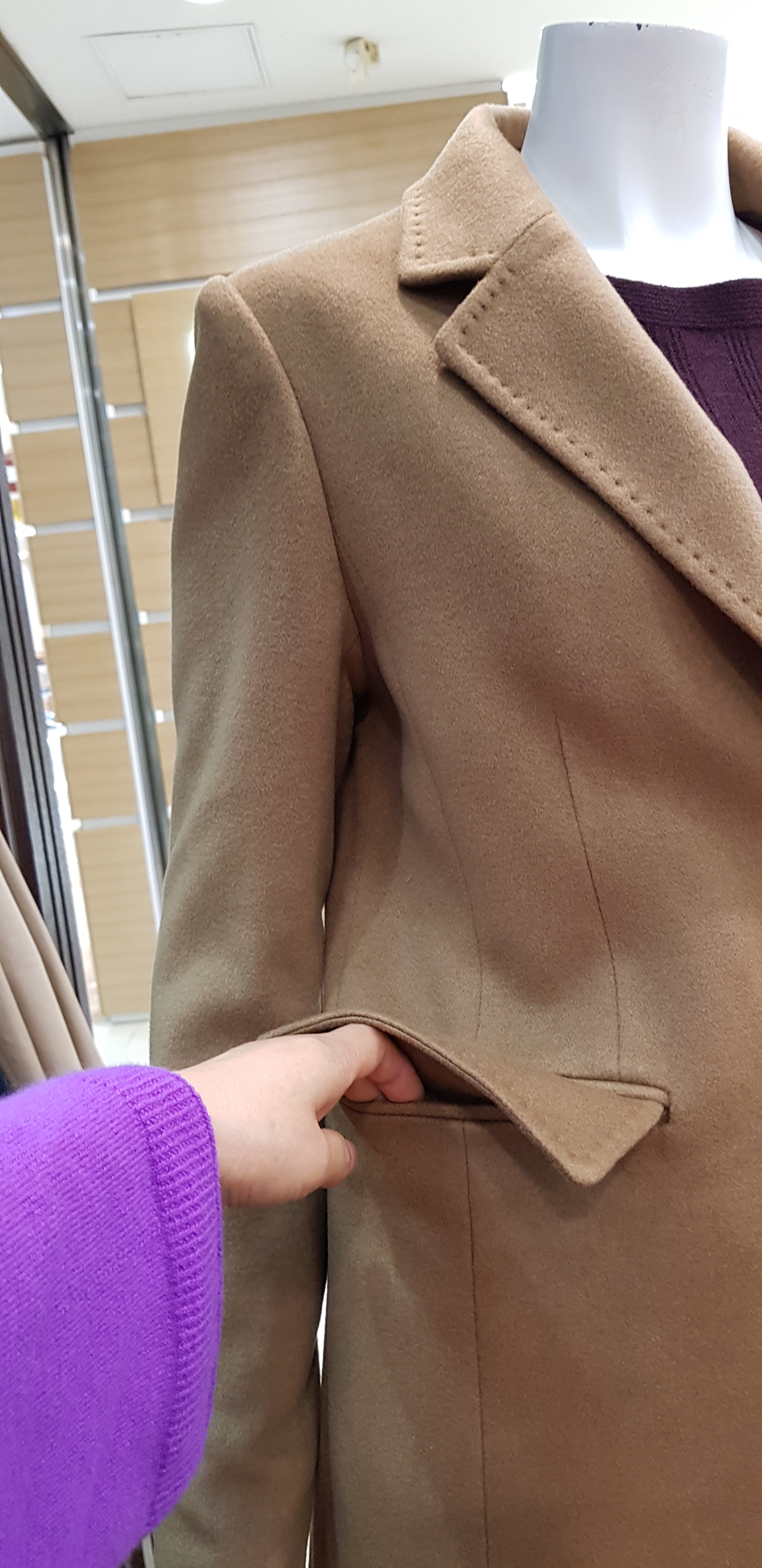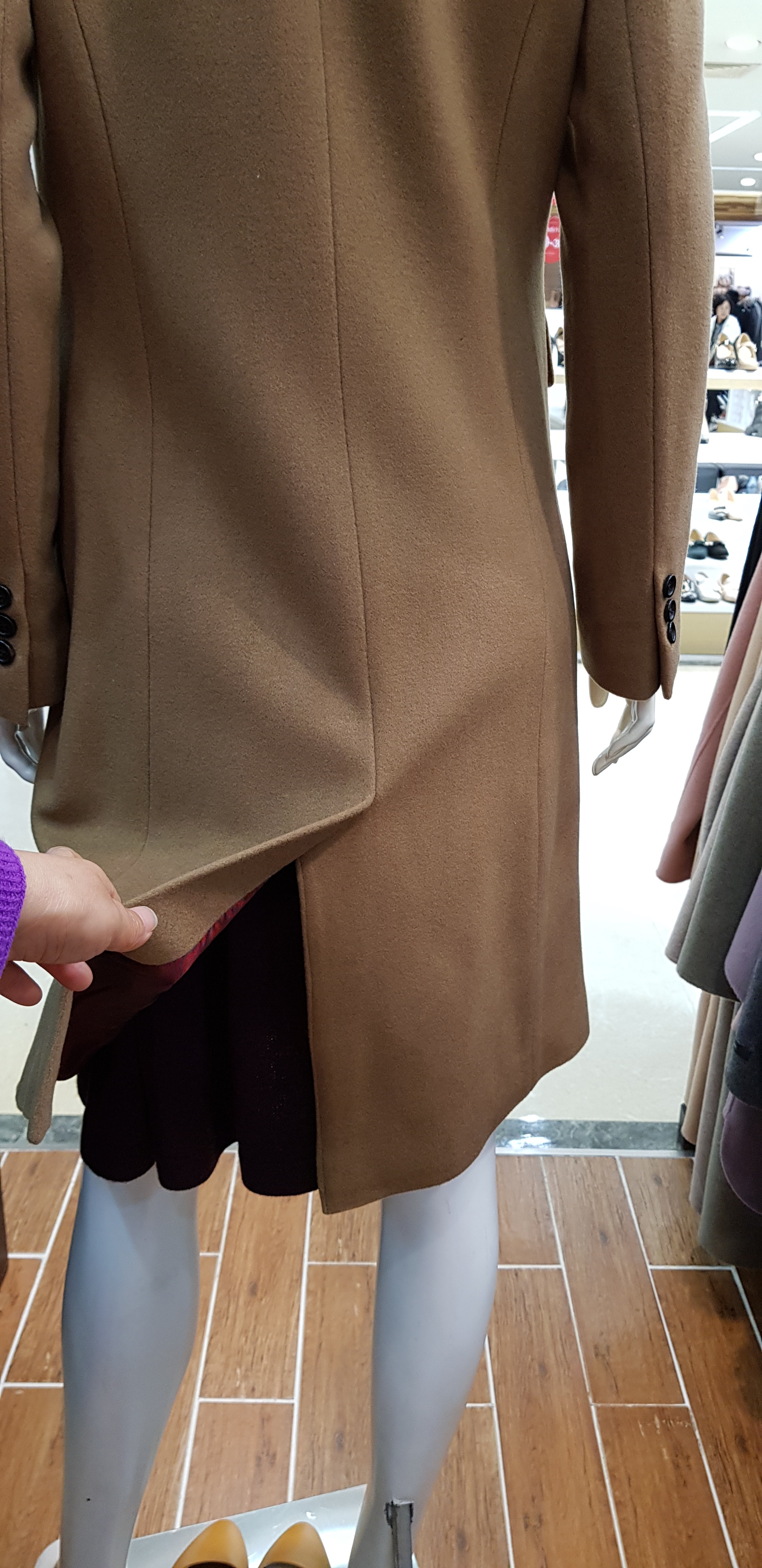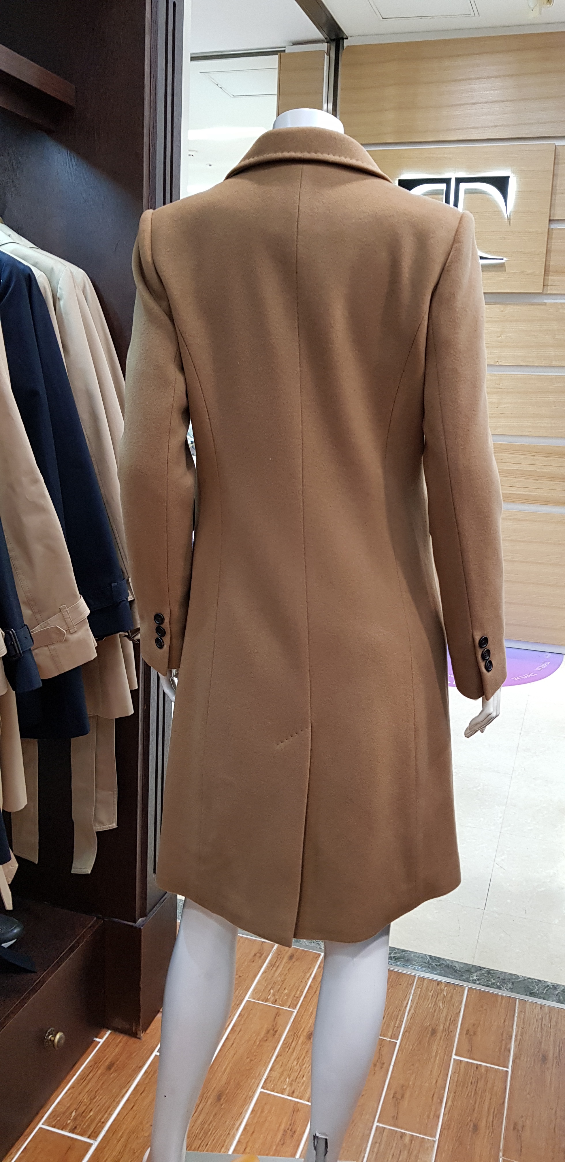 키이스~캐시미어 백퍼센트의 코트입니다 기본 테일러카라의 정중함과 캐시미어소재의 고급스러움이 멋스럽고 주머니와 카라부분의 스티치가 포인트인 핏이 슬림한 아이템입니다 총장96센티입니다