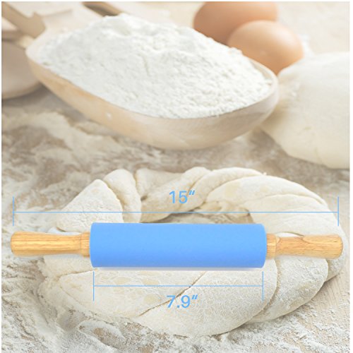 JamHoo Non-stick Rolling Pin Silicone Surface for Rolling Dough - Large Size,7.9 x 2-inches (Total Measurement 15 x 2-inches) (Blue)