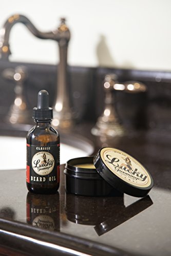 Studio : Lucky Grooming Publisher : Lucky Grooming Binding : Health and Beauty Product Description MAKES BEARDS GROW Cultivating the perfect beard takes willingness, dedication, and an eye for the finer things in life. It takes Lucky Grooming Classic Beard Balm. Handcrafted in Illinois with fragrance, dye, paraben and BHT-free ingredients, our balm is the stuff handsome dreams are made of. It stimulates healthy beard growth so you look your best. CONDITIONS A man has to tame many things in life - his career, the horsepower in his engine and his beard, to name a few. We've got you covered on that last one with moisturizing oils, beeswax, and other literally awesome ingredients that promote hair growth around your facial area. SOOTHES A finely cultivated beard means nothing if you're face is screaming for mercy from itchy redness. That's why we included avocado oil and beeswax, a dominant tag team against any dryness and blocked pores that might want to wrestle your vibe into submission. We lock in the good kind of moisture so you and your beard remain victorious. NATURAL INGREDIENTS Almond oil, avocado oil, lavender oil, jojoba oil. We could go on about our ingredients but that's what ingredient labels are for. Just know they're working for your beard's benefit while also battling acne and stress with anti-inflammatory and antibacterial properties. All without nasty chemicals that add nothing to your saddlebag of manliness. LEAVE IT IN Great brisket takes time. Great-looking beards take time, too. With just barely a fingernail-size dab, you simply work the balm into your beard and leave it in all day to reap myriad benefits. And with your purchase of Lucky Grooming products, you're helping to give back to our veterans who have given so much for our country. Wins all around. -Lucky Grooming Classic Beard Balm -Promotes Healthy Beard Growth -Natural Ingredients -Fights Acne and Stress -Fragrance, Dye, Paraben, and BHT free 0
