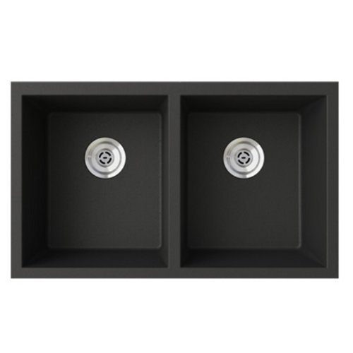 Swanstone QUSQ-3322.077 Undermount Double Bowl Sink, 32-Inch x 21-Inch, Nero