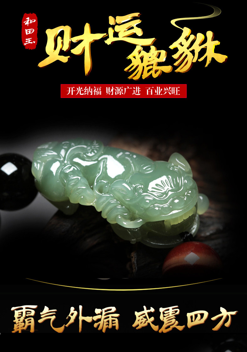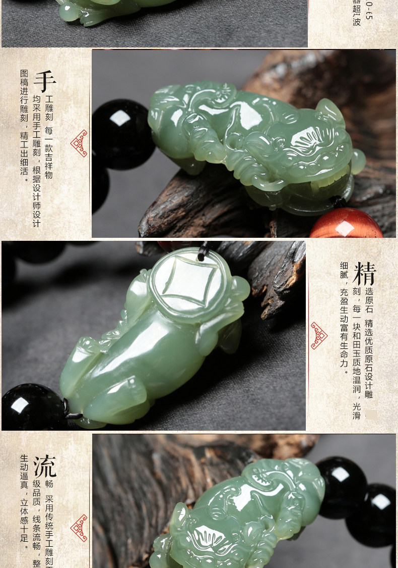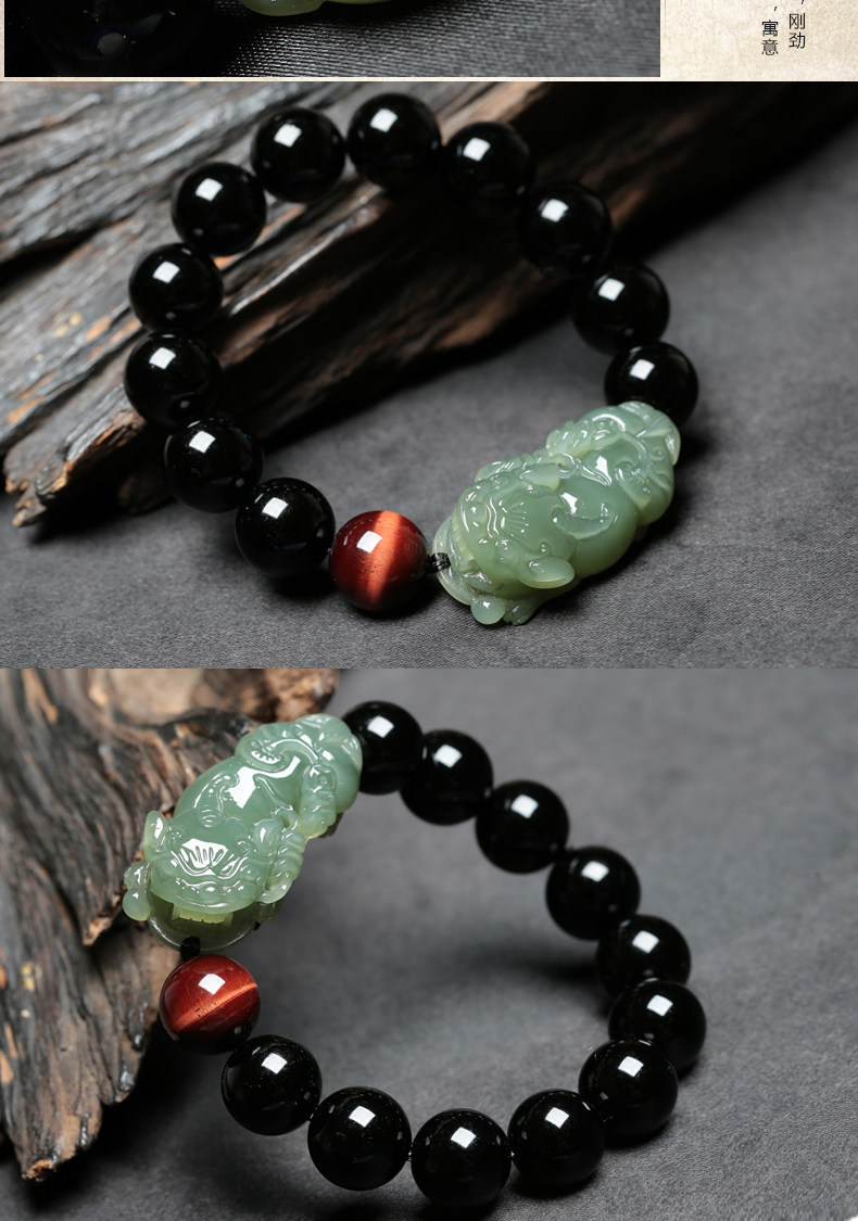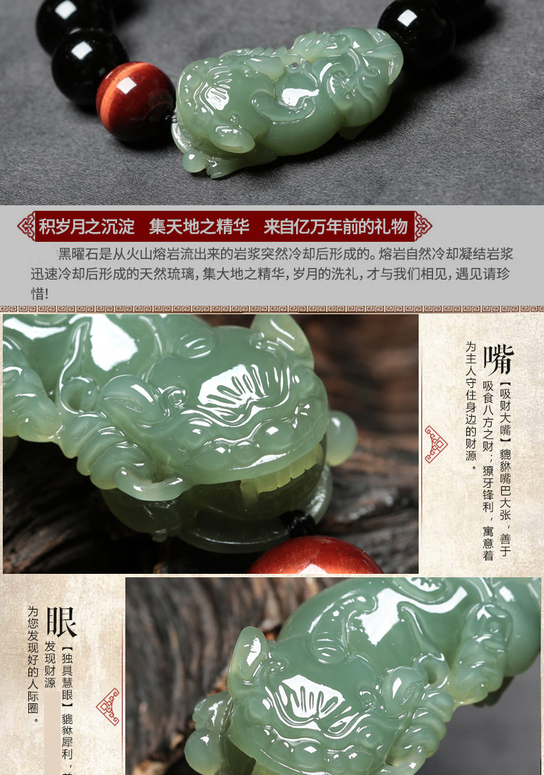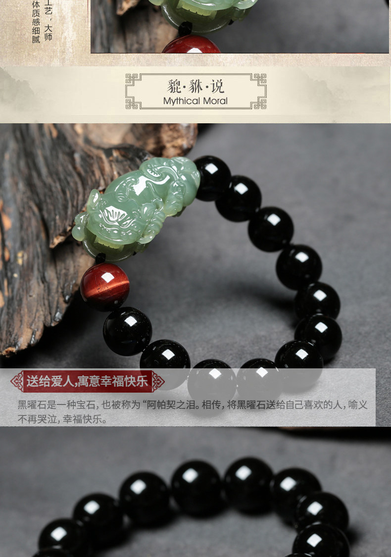 开光和田玉貔貅手链 玉石黑曜石貔貅男士手串碧玉皮丘男款首饰品