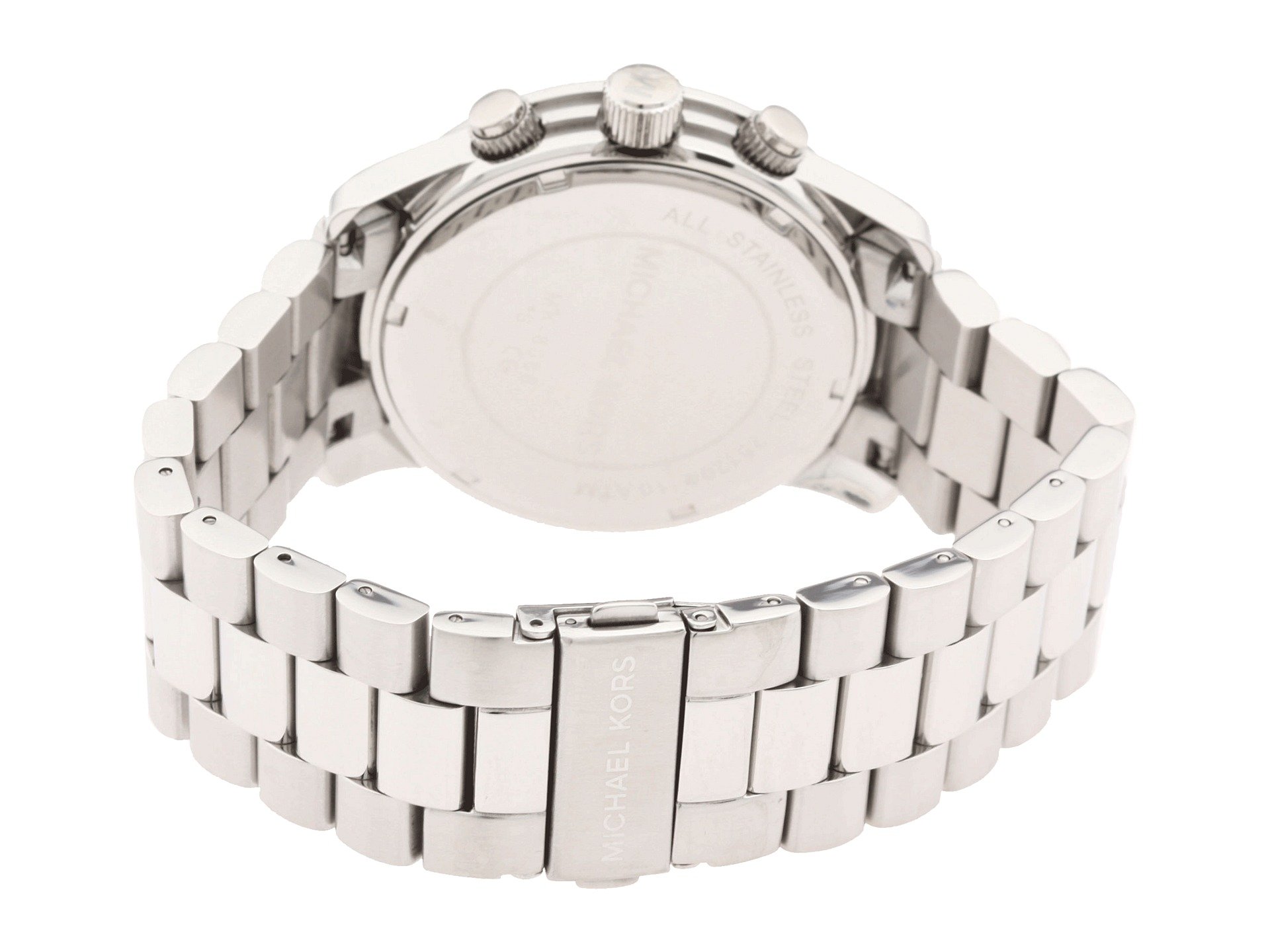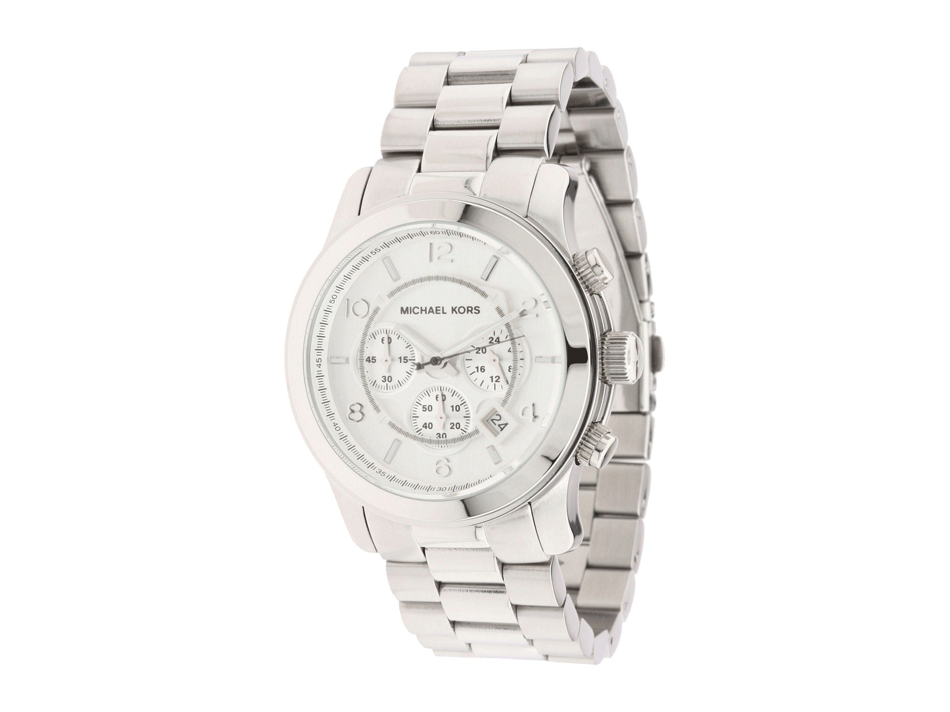 | Product Information SKU: #7539924Project the attitude of a consummate professional when you wear this outstanding Michael Kors™ timepiece.Silver-tone stainless steel case and bracelet.Fold-over clasp closure with push button release.Three-hand analog display with quartz movement, three sub-dials and date display window.Chronograph functionality.Dial face includes luminous hour markers.Dial ring features split-second track.Water resistant 10 ATM/100 meters.This product may have a manufacturer's warranty. Please visit the manufacturer's website or contact us at warranty@support.zappos.com for full manufacturer warranty details.Measurements: Case Height: 45 mm Case Width: 45 mm Case Depth: 15 mm Band Width: 25 2?5 mm Band Circumference/Length: 9 1?2 in Weight: 7 oz |