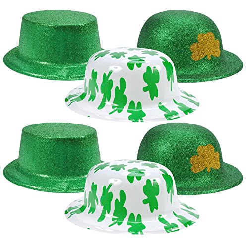 -. Binding : Toy -. Brand : Gift Boutique -. Feature : St Patrick's Day Shamrock Hat, Pack of 6 3 different styles / Wear one of these plastic derby hats on St. Patrick's Day to top off your costume! / Turn them upside down and fill them with party favors such as small toys and candy. Hand these Leprechaun hats out to all your partygoers! / The shamrocks may bring them a wee bit o' Irish luck! / Measures: 10.25"x 9.25"x 4"inside: 7.5" x6.5" -. IsAdultProduct : 0 -. Label : Gift Boutique -. Manufacturer : Gift Boutique -. MPN : shamrock hat -. PartNumber : shamrock hat -. ProductGroup : Toy -. ProductTypeName : TOYS_AND_GAMES -. Publisher : Gift Boutique -. Studio : Gift Boutique -. Title : 6 Pack St Patrick’s Day Green Irish Shamrock Hats Costume Party Supplies Decoration Accessories By Gift Boutique