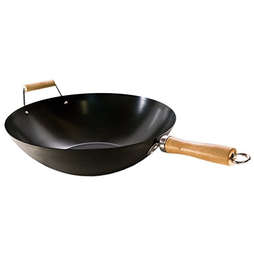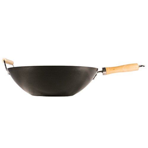 TukTek Kitchen Tech 14" Heavy Duty Iron Wok w/ Wood Handles & Non-Stick Surface for Stir Fry