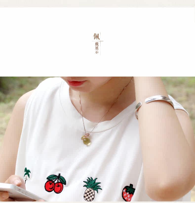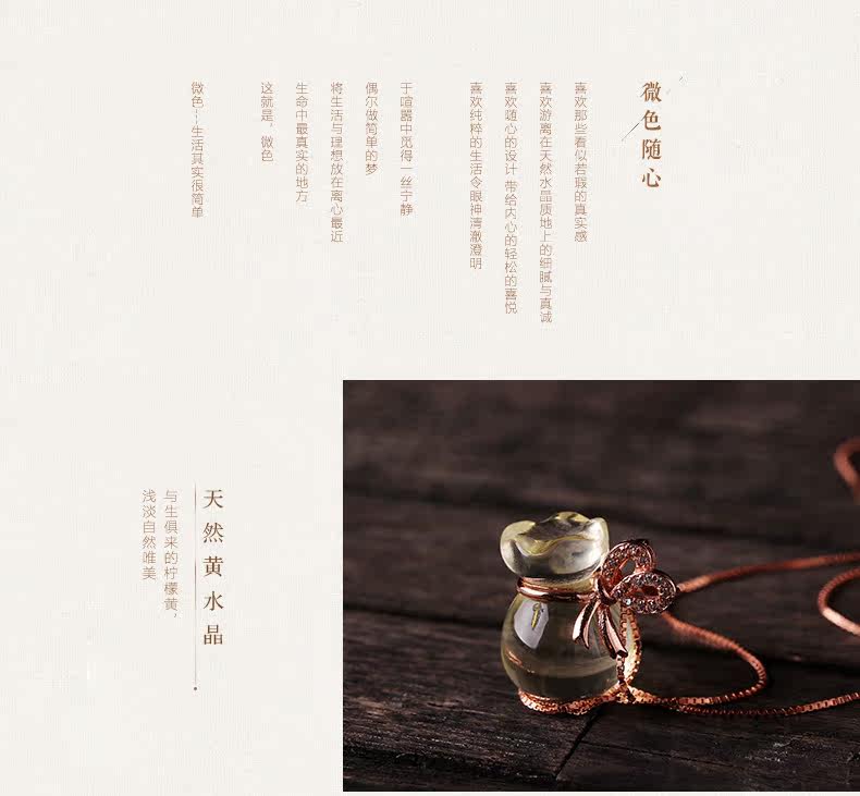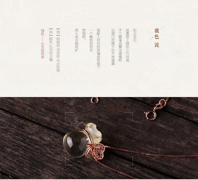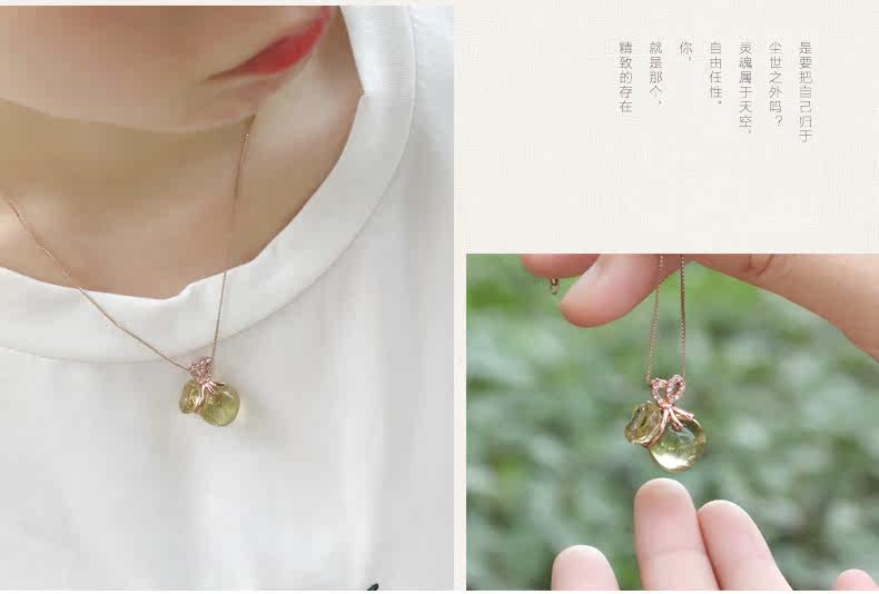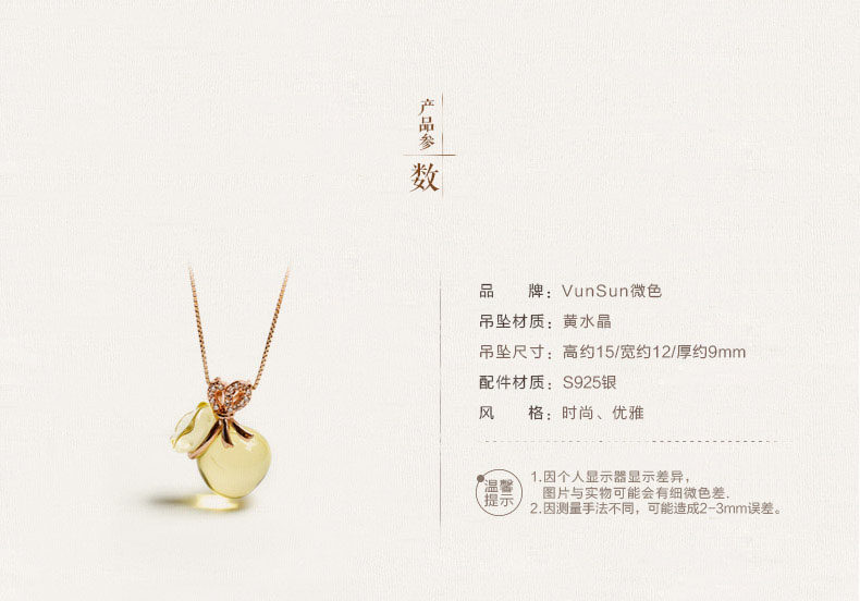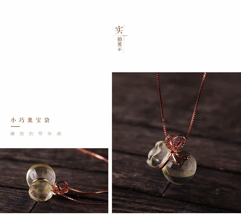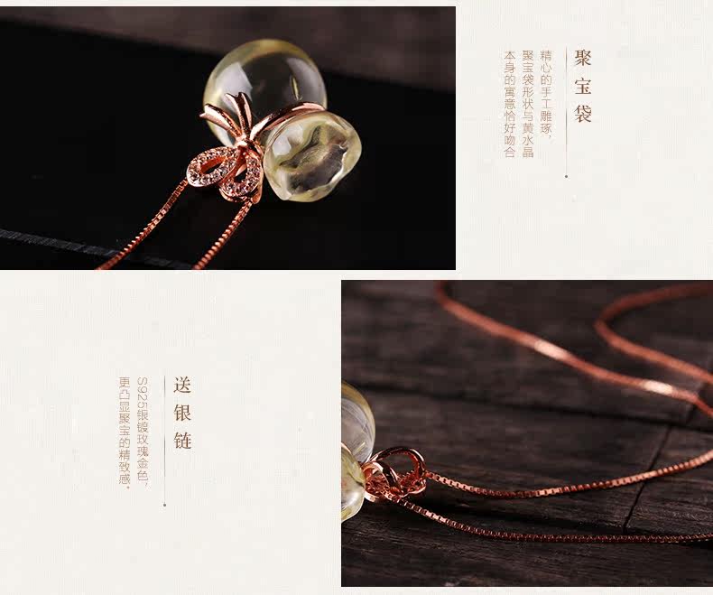 VunSun天然黄水晶钱袋吊坠女款s925银饰本命年项链礼物项坠饰品