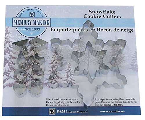 R & M International 10 Piece Snowflake Cookie Cutter Set with Customizable Decorator Cutters for Intricate Designs, Silver