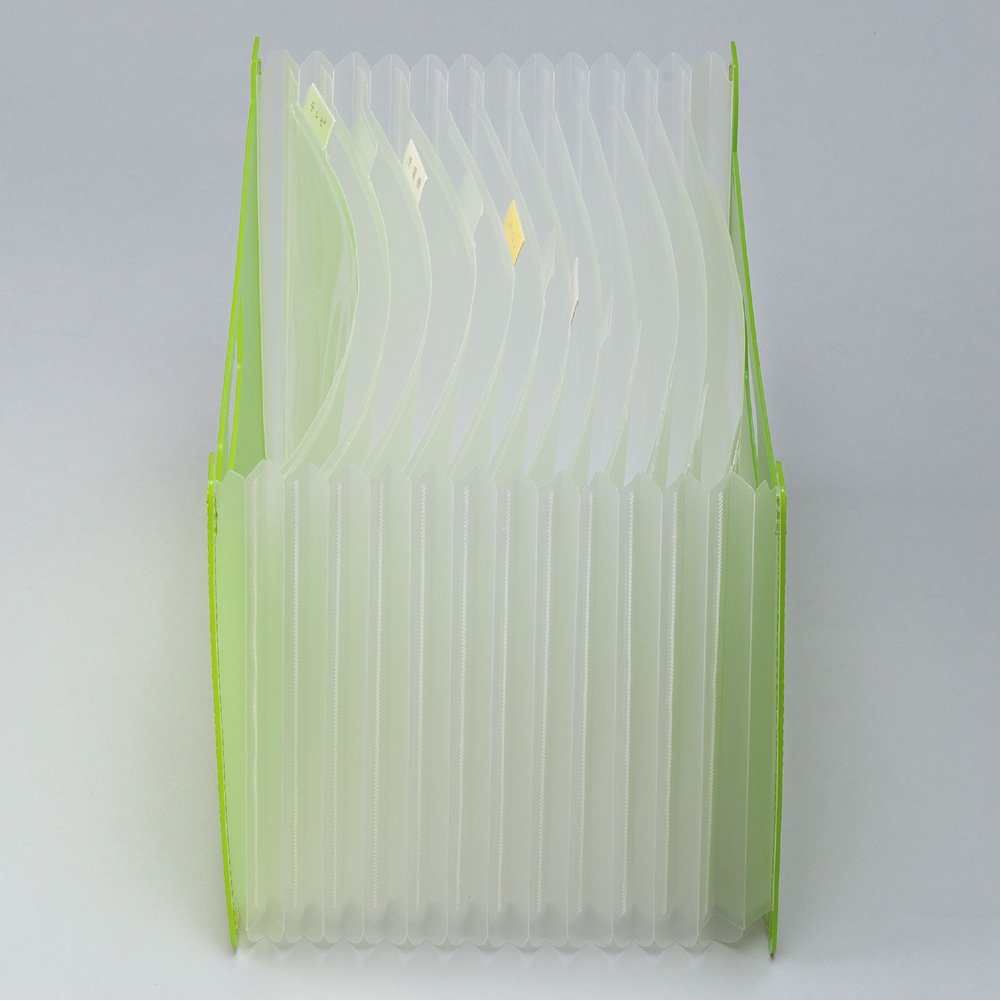 Accordion style storage stand convenient for classification where the pocket expands and contracts by the volume of the document.