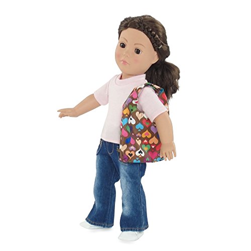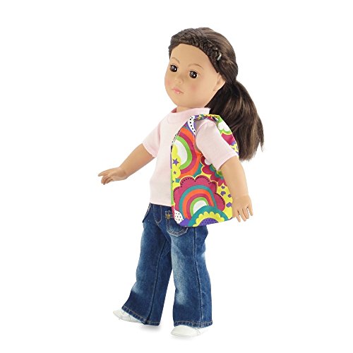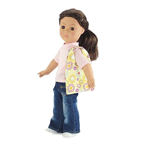 Studio : Emily Rose Doll Clothes Publisher : Emily Rose Doll Clothes Binding : Toy Product Description Super amazing value pack, including? 3 of the most handy, fashionable, multipurpose "grab and go" tote bags around, perfect for your 18" doll! These fun and colorful carrier bags are designed to carry your 18 inch doll and all of her needed accessories for your day out,? and as a bonus, the carrier neatly folds and stores inside a matching doll sized purse!?? Each of the 3 designs are beautiful and bright, including a yellow bag with gold, purple and blue flowers, a? bright multicolored? heart and flower print, and a chocolate brown bag with multicolored hearts.? These affordable travel bags come with a metal chain to attach to mom's pocketbook or backpack, so you never leave home without it. The full sized bags and doll purses are all made from durable, water-resistant polyester fabric that is easy to clean and snaps on top to close.? Versatile and fun! *Doll Not Included* 0