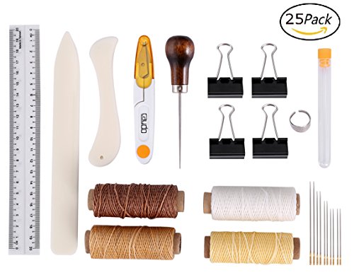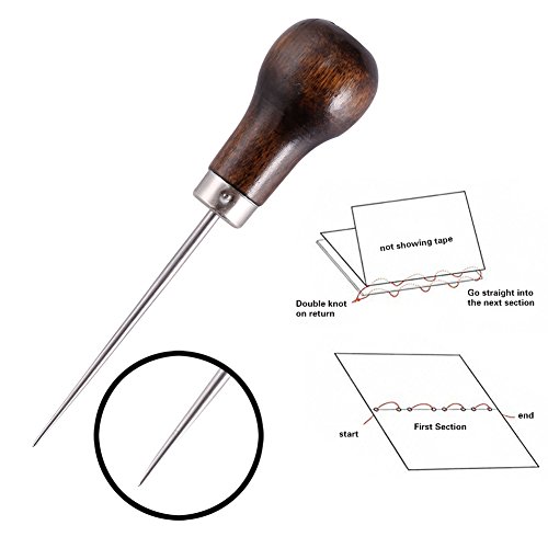 - OTHER TOOLS - 25Pieces bookbinding tools set (10x large-eye needles for bookbinding, 1x wood handle awl, 1x thread clipper, 1x thimble ring, 4x waxed thread, 2x bone folder paper creaser, 1x needle bottle,1x ruler,4x binder clips)