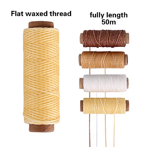 - DURABLE WAXED THREAD - The 4 rolls of waxed threads are in 4 different colors, beige, khaki,brown and creamy white, each is approx. 1 mm (150D) in diameter. It is long enough for you to use for a quite a long time.