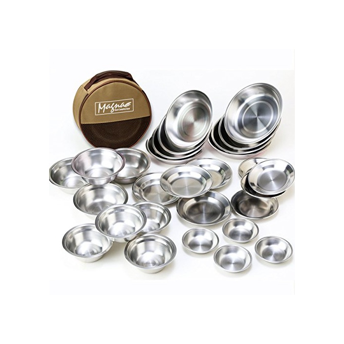 MAGNA(머그나) 스테인레스 식기 세트 7종 충분히 28매 패밀리 세트 접시가 큰 최대21cm