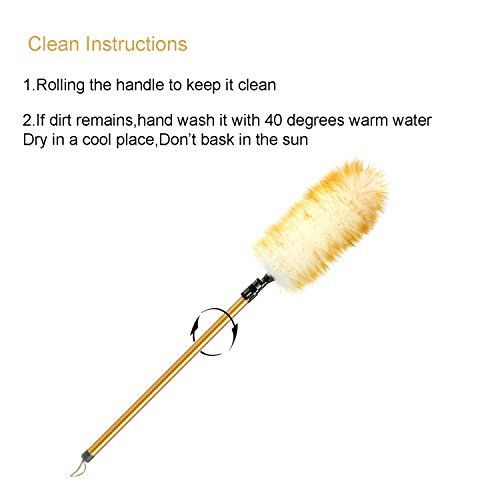 No More Tired Hands Dust All Over The Place! The Dust Cleaner To The Rescue! If you ... ... are sick and tired of dust flying around. ... have had enough with flimsy made dusters. ... look for a truly extendable dust remover. ... relate to any of the above! Then you should keep on reading. This long handle wool dusters are here to revolutionize cleaning time. No more spending a small fortune to replace dusting cloths.No more dusters shedding on your floor. Find your peace of mind again with a long reach duster in your hands. Attracts Holds Dust, Flint Dirt! Carefully designed to please even the most demanding cleaning needs, this extendable duster features natural and ultra smooth wool fibers. The anti static wool can not only hold dust, but also attract it. The ergonomic and up to 59 inches long telescoping duster helps you tackle dust, dirt, litter, and flint from pretty much any place imaginable. Extend the aluminum alloy rod as much as you want. Forget about sore hands. Forget about aching backs! Forget about straining your neck. We've got you covered. Being compact, lightweight and easy to hold, this dusting brush is an absolute must have addition to your cleaning gear! This Extendable Duster Cleans Books, CD racks and shelves. Electronic devices, TV, desktops, and laptops. Desks, chairs, tables, sofas, beds, and closets. Photo frames, vases, paintings, and home decor. Ceiling fans and cathedral lights. Bikes, toys, cars, and anything that comes to mind! Rolling this high duster before use will have a better effect Hassle Free Maintenance Keep this beauty clean by simply rolling its handle. If dirt remains, hand wash it with 40 degrees warm water and dry it in a cool place. What are you waiting for? Scroll Up Click Add To Cart Now! 0 |