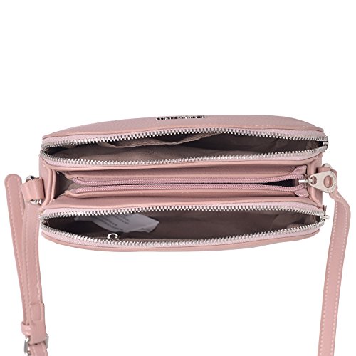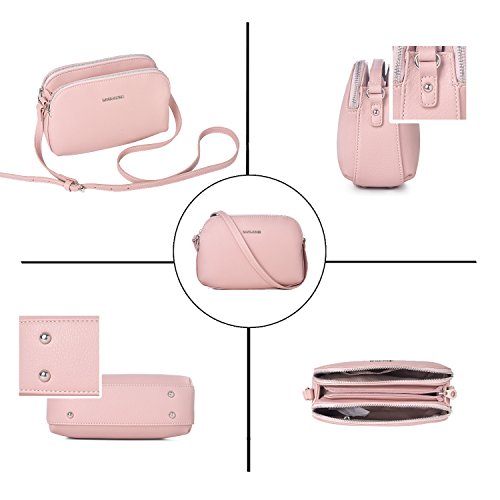 TONS OF STORAGE COMPARTEMENTS in a compact size:3 fully lined and top zippered individual pockets has enough room for your cell phone, wallet, makeup,tablets and toiletries;1 ID window slip and 1 zippered slip inside for organized pack