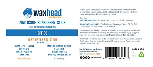 Reef Safe, Contains No Oxybenzone or Octinoxate. Made With Only 4 Certified Organic and Mineral Ingredients, Use Waxhead Sunscreen for a Full Day of fishing, sailing, swimming, surfing, hiking or any Favorite Outdoor Sport.