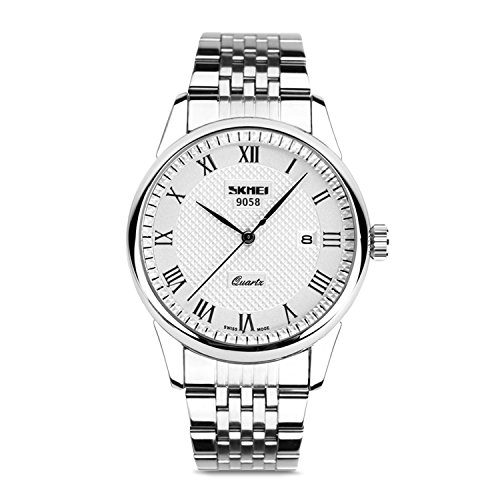 -. Title : Aposon Mens Analog Watches, Roman Numeral Quartz Watches Stainless Steel Business Casual Wristwatch Luxury Dress Watch for Men Water Resistant with Calendar Date Window
