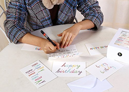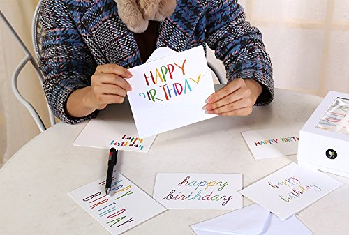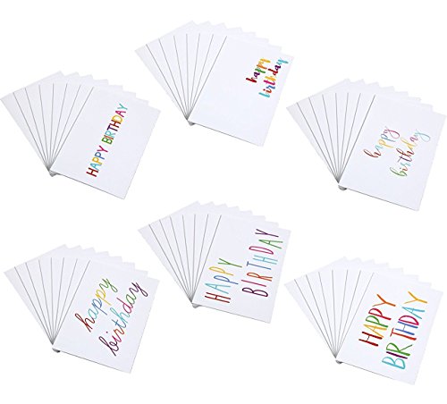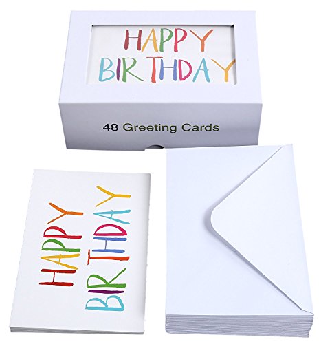 48 Happy Birthday Cards Bulk Assortment – 6 Unique Colorful Rainbow Font Designs 4 x 6 Inches Includes 48 Envelopes