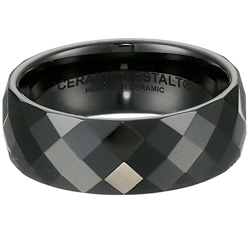 -. Title : Black Ceramic Ring by CERAMIC GESTALT® - 8mm . Faceted Design. (Size 5 to 14).