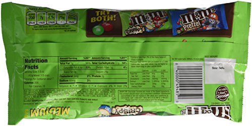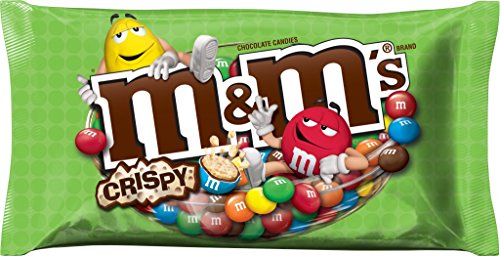 -. Binding : Grocery -. Brand : M & M's -. Feature : Contains twelve (12) 9.9-ounce bags of M&M'S Crispy Chocolate Candy / M&M'S Crispy Chocolate Candy features a crispy center coated by milk chocolate and covered in a colorful candy shell / Gone for more than a decade and brought back by popular demand, this crispy chocolate snack is back / M&M'S Crispy Chocolate Candy is the perfect movie candy or a great snack to share with friends and family / A new spin on an old classic, Crispy M&M'S Candy adds a fun crunch to your favorite chocolate treat at 190 calories per serving -. IsAdultProduct : 0 -. Label : Mars Snackfoods -. Manufacturer : Mars Snackfoods -. NumberOfItems : 12 -. PackageQuantity : 1 -. ProductGroup : Grocery -. ProductTypeName : GROCERY -. PublicationDate : 2015-11-04 -. Publisher : Mars Snackfoods -. ReleaseDate : 2015-11-04 -. Size : 9.9-Ounce Bag-Pack 12 -. Studio : Mars Snackfoods -. Title : M&M'S Crispy Chocolate Candy 9.9-Ounce Bag (Pack of 12)