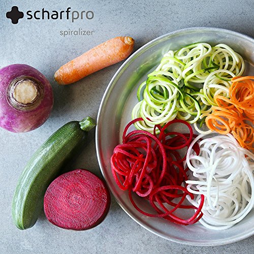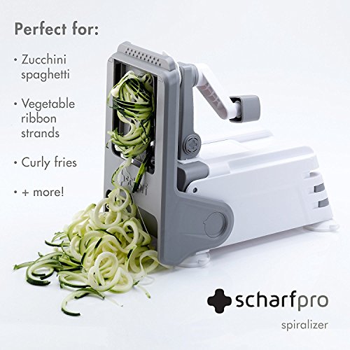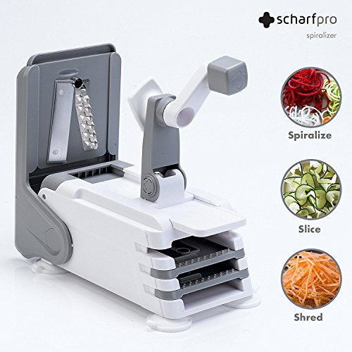 ScharfPro Folding Vegetable Spiralizer - Three Blades - Compact and Heavy-Duty Spiral Vegetable Slicer - Turn Zucchini, Carrots, Potatoes and much more into Beautiful Long Strands (Gray)