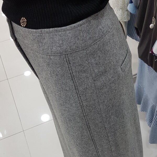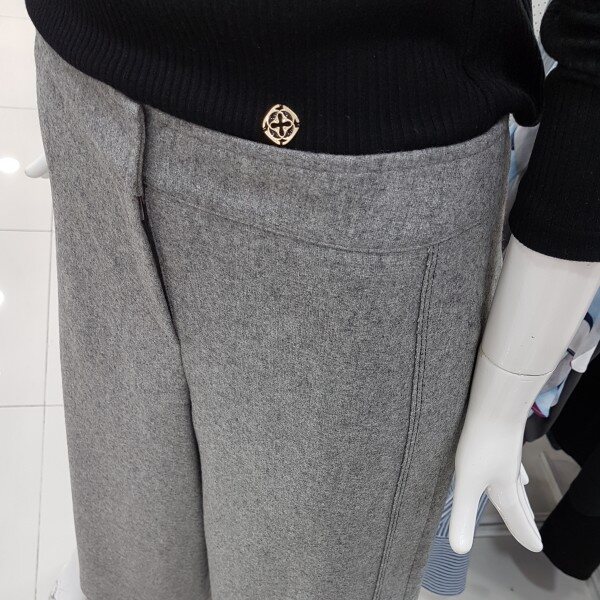 멜란지그레이에 포근한 와이드팬츠네용옆선스티치라인에 세련하구요~9부정도 기장에 일자핏와이드가 날씬해보여요도톰한소재에 추운날씨까지도 코디굿~하구요겨울시즌 앵클부츠에 세미정장으로 좋으네요허리단면37총장78