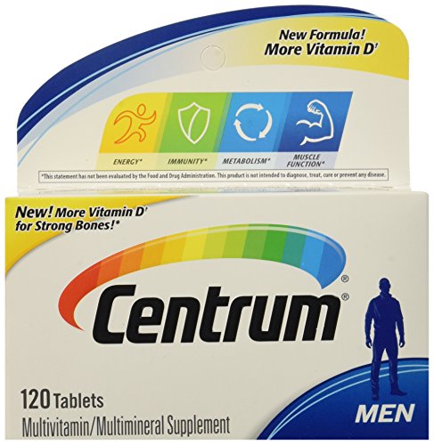 -. Binding : Health and Beauty -. Brand : Centrum -. EAN : 0300054757562 -. Feature : Centrum Men is personalized for men and helps support muscle function, energy, immunity and metabolism / Providing essential nutrients, Centrum is backed by 30 years of nutritional science to bring you the most complete multivitamin / For the Most Important Parts of You / Most recommended; Most studied; Most preferred -. IsAdultProduct : 0 -. Label : Centrum -. Manufacturer : Centrum -. MPN : 577326 -. NumberOfItems : 1 -. PackageQuantity : 1 -. PartNumber : 577326 -. ProductGroup : Health and Beauty -. ProductTypeName : HEALTH_PERSONAL_CARE -. PublicationDate : 2015-05-21 -. Publisher : Centrum -. ReleaseDate : 2015-05-18 -. Size : 120 Count -. Studio : Centrum -. Title : Centrum Ultra Multivitamin and Multimineral Supplement Tablets for Men, 120 Count -. UPC : 300054757562