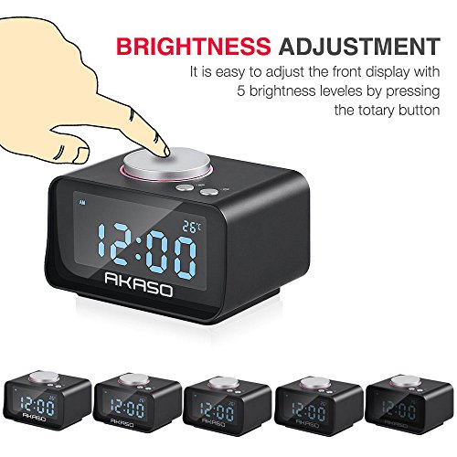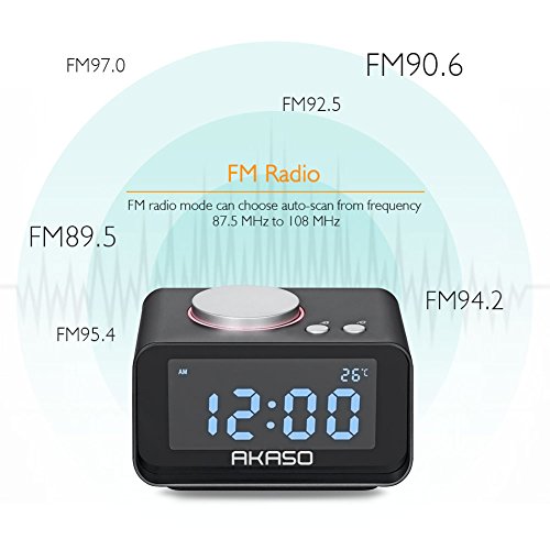 DUAL ALARM AND SNOOZE - Dual alarms allow for two seperate wake times while snooze affords you a few extra minutes of sleep. The alarm can be set as either ringtone or FM radio, and volume is adjustable by the rotary button.