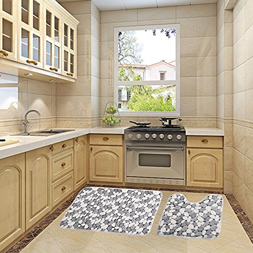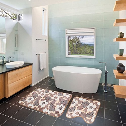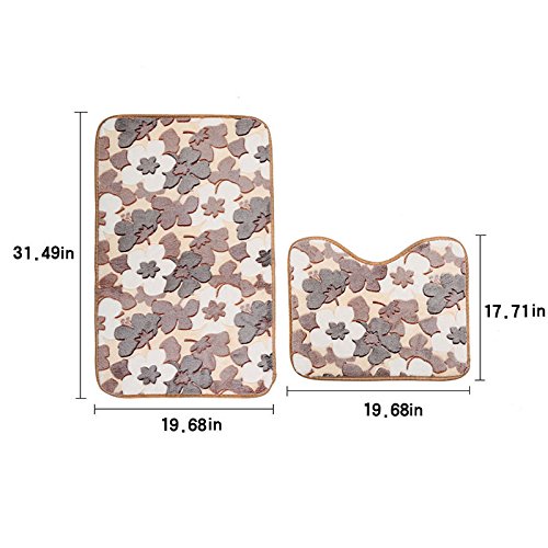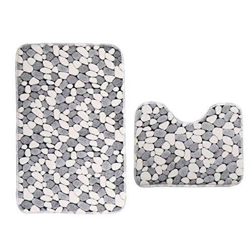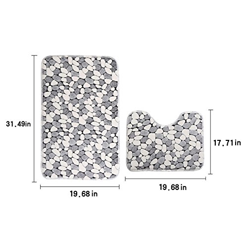 BluShell 2Pcs Bath Rug Mat Set Microfiber Absorbent Non-slip Bathroom Contour Mats Combo Shower Mat and U-shaped Toilet Floor Rug