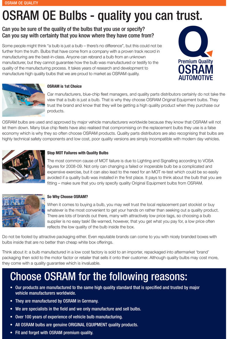 Choose brand, model and construction year of your car in the menu and you will get a good view over suitable OSRAM lamps and their reference numbers.