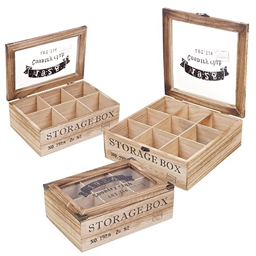 Studio : KM Publisher : KM Binding : Kitchen Product Description Tea lovers, you have met your perfect storage solution! Store your tea stash in this sturdy burned wood tea box. It contains 6 compartments, a lid for viewing your personal selection and retro design printed on box and lid for extra effect. For those who have other ideas, put your food or spices into this reliable and lightweight container. 0