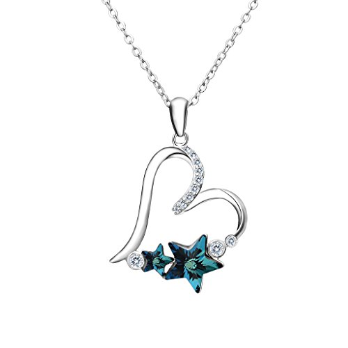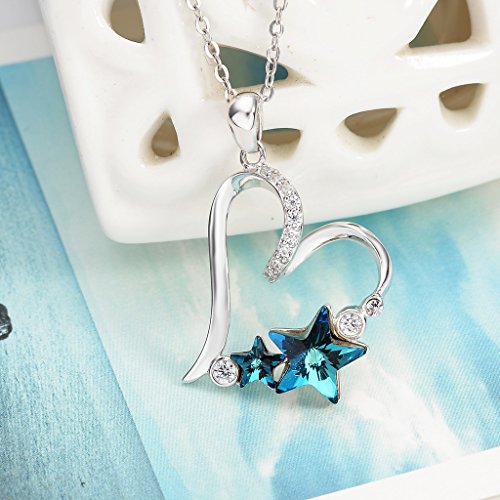 -. Title : BriLove Women 925 Sterling Silver "Star in My Heart" Pendant Necklace Adorned with Swarovski Crystals Bermuda Blue