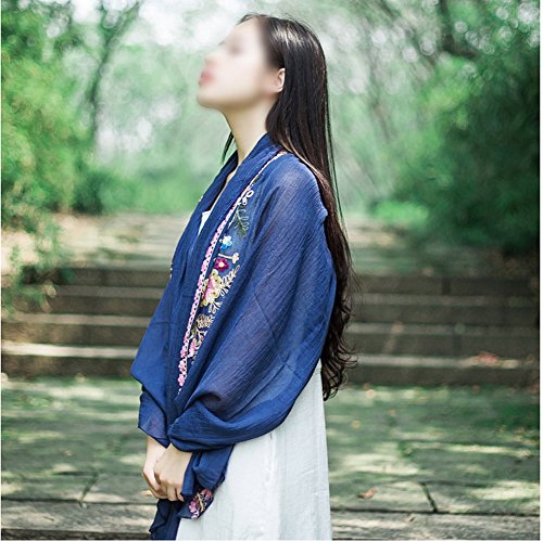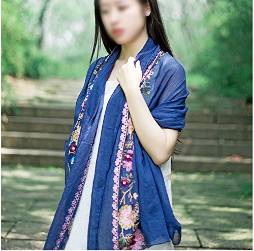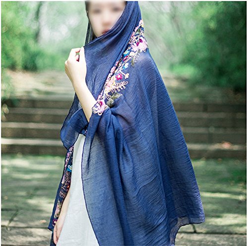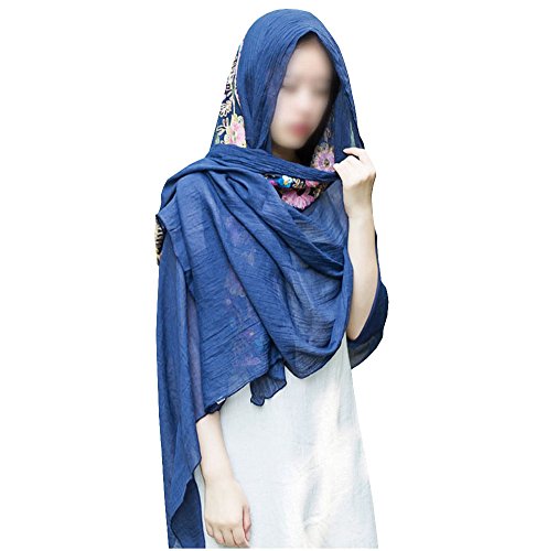 Cotton and Linen Crinkle Long Scarf Shawl for Women Multiple Uses Dark Blue