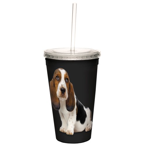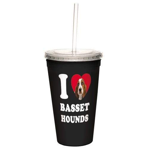 Tree-Free Greetings CC35002 I Heart Basset Hounds Artful Traveler Double-Walled Cool Cup with Reusable Straw, 16-Ounce