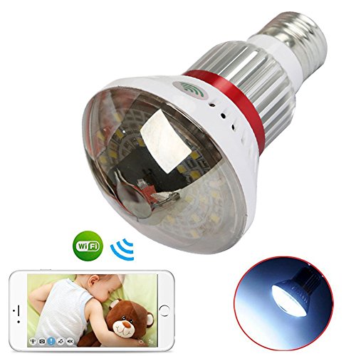 -. Feature : SPY MIRROR BULB: Mirror Bulb P2P Wifi AP IP Camera,Motion Activated Security Hidden Camcorder DVR,Real-time Audio & Video Recording,IR Night Vision with Invisible Infrared Light / MOTION DETECTION & INFRARED: It is equipped with infrared capabilities, which helps it capture the scene even when there is no light in the room, keeping you informed of any happenings in the dark of night. / WIFI WIRELESS: Wifi IP Network Function.Disguised as a Family Bulb, this Wi-Fi IP camera transmits secure, interference free, video signal directly to your wireless router for remote viewing and recording / MOST PRACTICAL: Support Smartphone Tablet APP Remote View and Control; Support PC Computer View and Control;Email Alert;7/24 Hours Non-stop Recording; Support 32GB TF Card in Max(not included); Circle Storage; / HIGH DEFINITION: Spy Mirror Bulb produces Full HD 960P video so recorded events are always crystal-clear