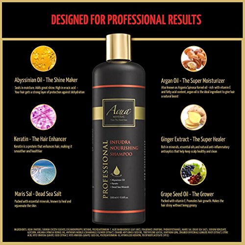 CLEANSE YOUR HAIR AND CARE FOR YOUR HEALTH: Infudra Nourishing Shampoo by Aqua Mineral naturally cares for hair without the harmful chemicals found in other cosmetics and shampoos. The shampoo treatment is free of sulfates and parabens. Other products dry hair out with harsh soaps, but the Abyssinian seed oil in Aqua Mineral's shampoo benefits your hair leaving it smooth and beautiful. The oil locks moisture in your strands for longer. It adds great shine and is helpful in detangling