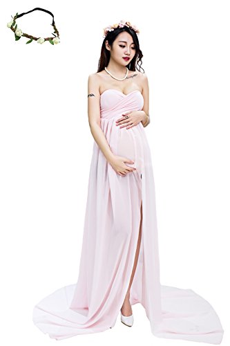 -. Title : セクシーなマタニティドレス薄手シフォンガウンSplit Front Maxi Photographyドレスのビーチ