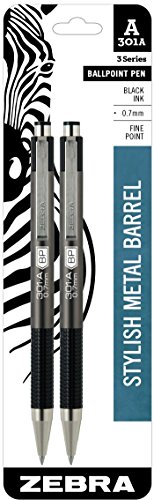 -. Title : Zebra 301A Retractable Ballpoint Pen, 0.7mm, Assorted Barrel, Black Ink, 2 Pack (27502)