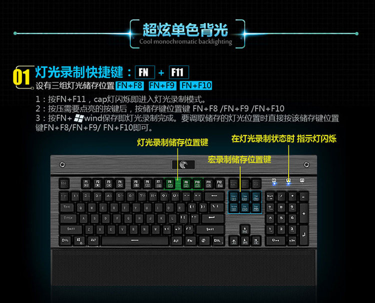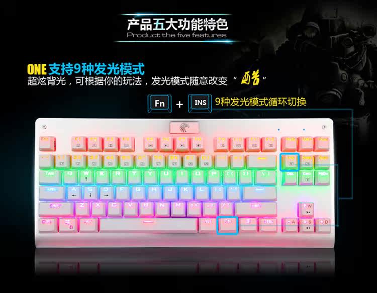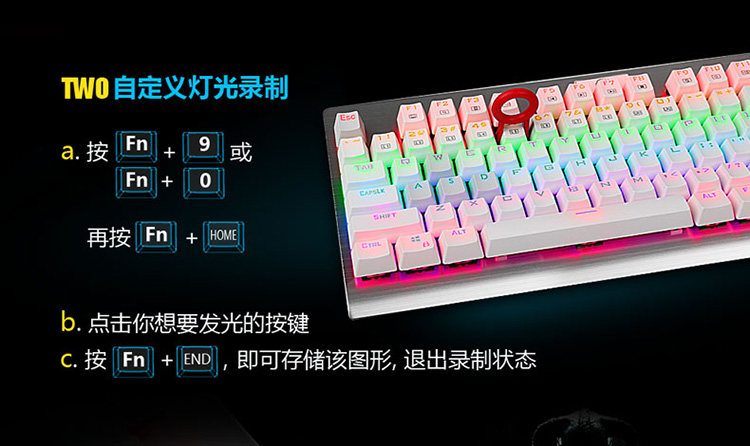 字母键为彩色背光,其它键为白色背光。颜色固定,只能设置亮或者不亮。