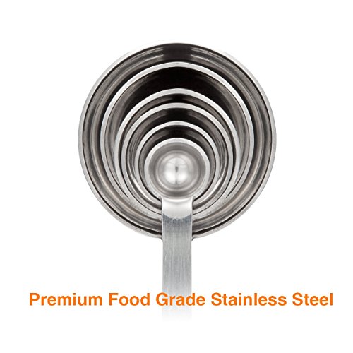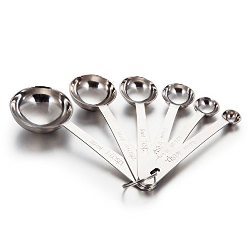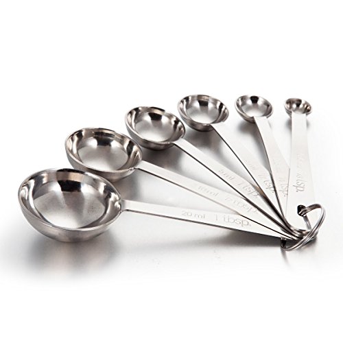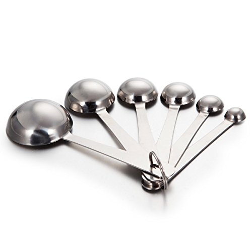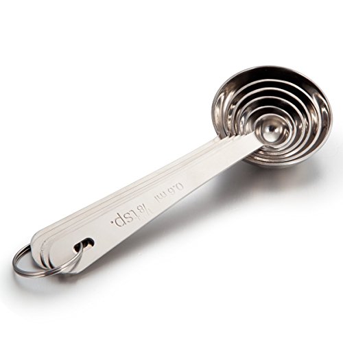 - 3. ACCURATE MEASUREMENTS:This set has the proven accuracy you need with the 6 most used spoon sizes: 1 tablespoon (15 ml), 1/2 teaspoon (7.5 ml), 1 teaspoon (5 ml), 1/2 tsp (2.5 ml), 1/4 tsp (1.25 ml) and 1/8 tsp (0.6 ml). Cook and bake with confidence with these commercial quality measuring spoons designed for everyone who loves great tasting food.