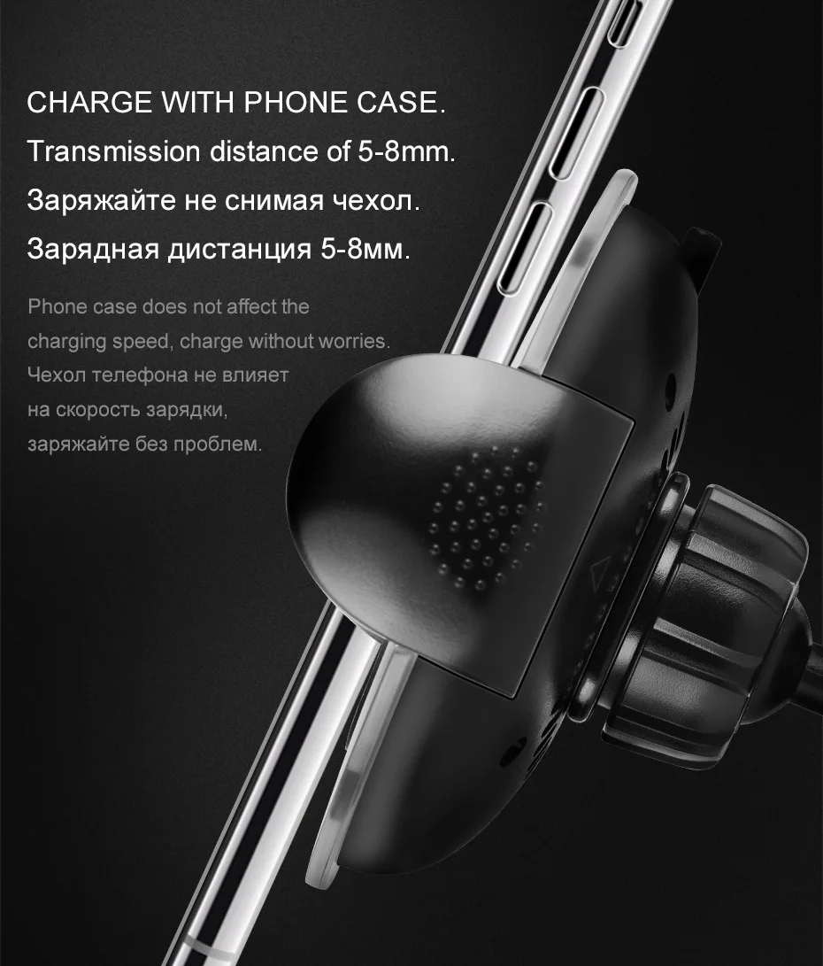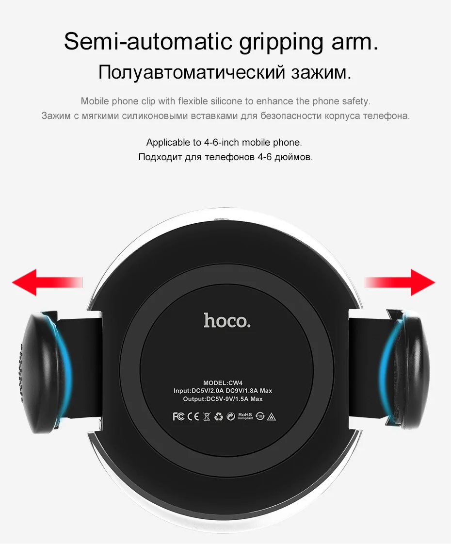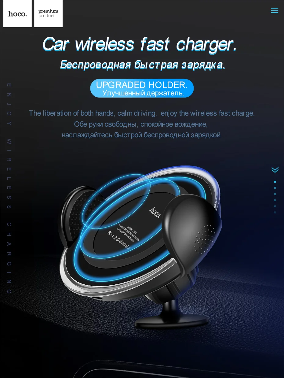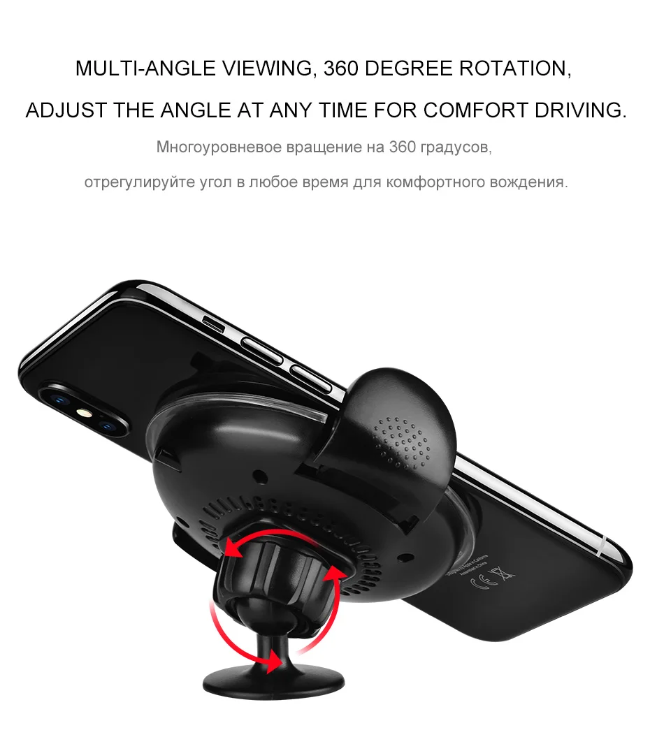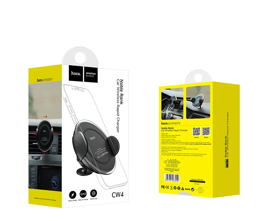 HOCO Universal Multi-function Car Phone Holder Stand with Qi Wireless Charger for IPhoneX 8/8 Plus Samsung S8 Plus S7 S6 Edge