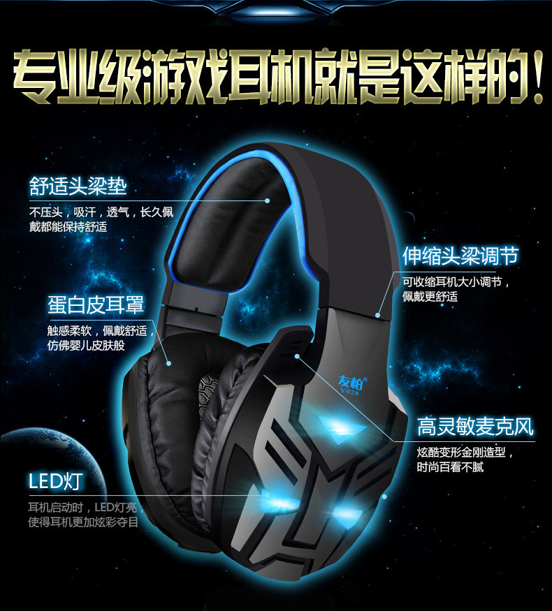 Y028 电脑耳机 头戴式耳麦重低音游戏耳机带麦话筒网吧耳机