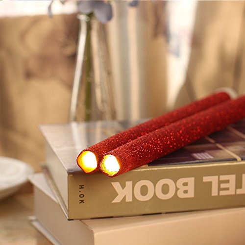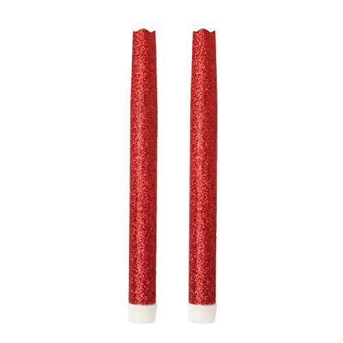 9" LED Flameless Dripless Led Taper Candles with Timer Function, Battery Operated, Wedding Dinner Candle Set of 2 (Red Glitter)
