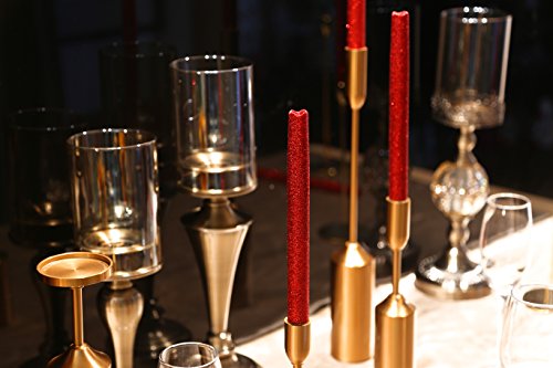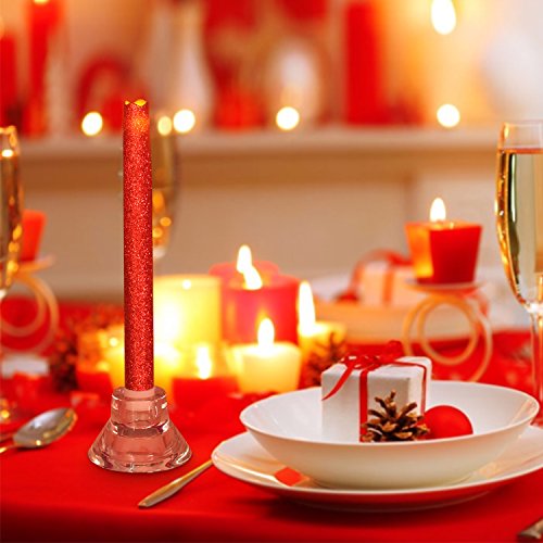 - Realistic & Specifications—Made from real high quality wax, glitter powder wax body shines with a dazzling light, feels and looks like a real taper candle. Blinking slowly. 9 inches high. Package of 2. 3 different sizes silicone holder adapter including, fitting for most candle holder. Runs on 2x AA batteries (not included). An excellent substitute to traditional taper candle.