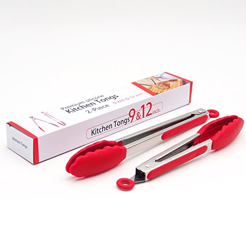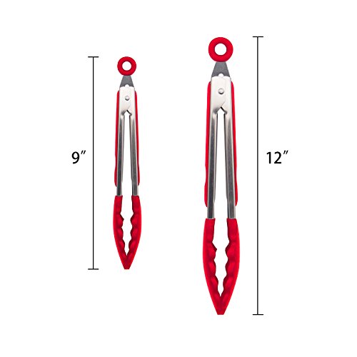 HOMEASY Premium Silicone Kitchen Tongs With 2 Pack (9 inch & 12 inch), Cooking Tongs & Food Tongs Fit For BBQ, Salad, Cooking, Baking (Red)