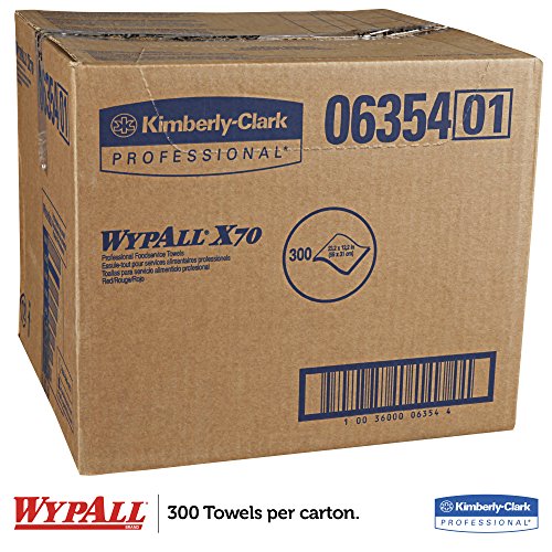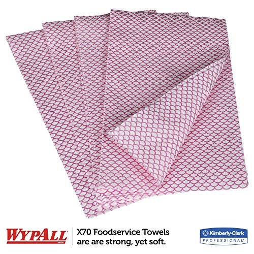 WypAll X70 Extended Use Foodservice Towels Reusable Wipers (06354), Quarterfold, Red, 1 Box, 300 Sheets