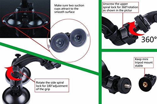 Smatree Double Suction Cup Mount with Greater Suction Power for GoPro Hero 5/4/3+/3/2/1/Session / for Compact Cameras