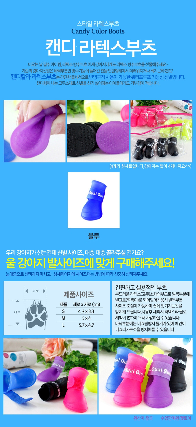 Candy Latex Boots Blue S 1p shoes boots dog shoes
