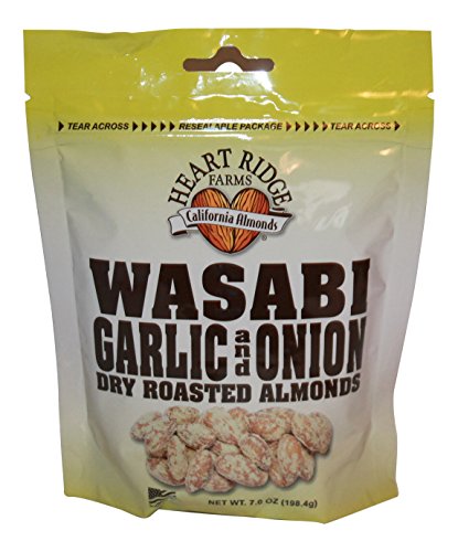 Heart Ridge Farms Gourmet Dry Roast California Almonds- 3 bags 7 ounces each (Wasabi Garlic Onion)